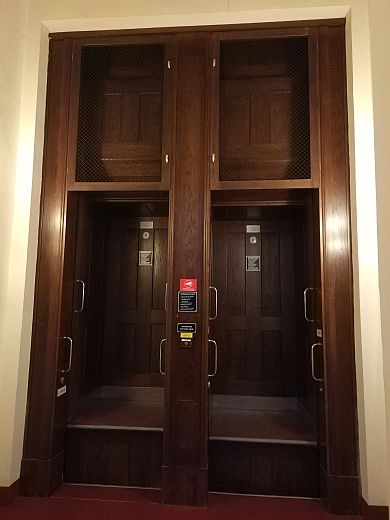 Zdjęcie: Paternoster w gmachu Sejmu Śląskiego w Katowicach (po renowacji; 2025).